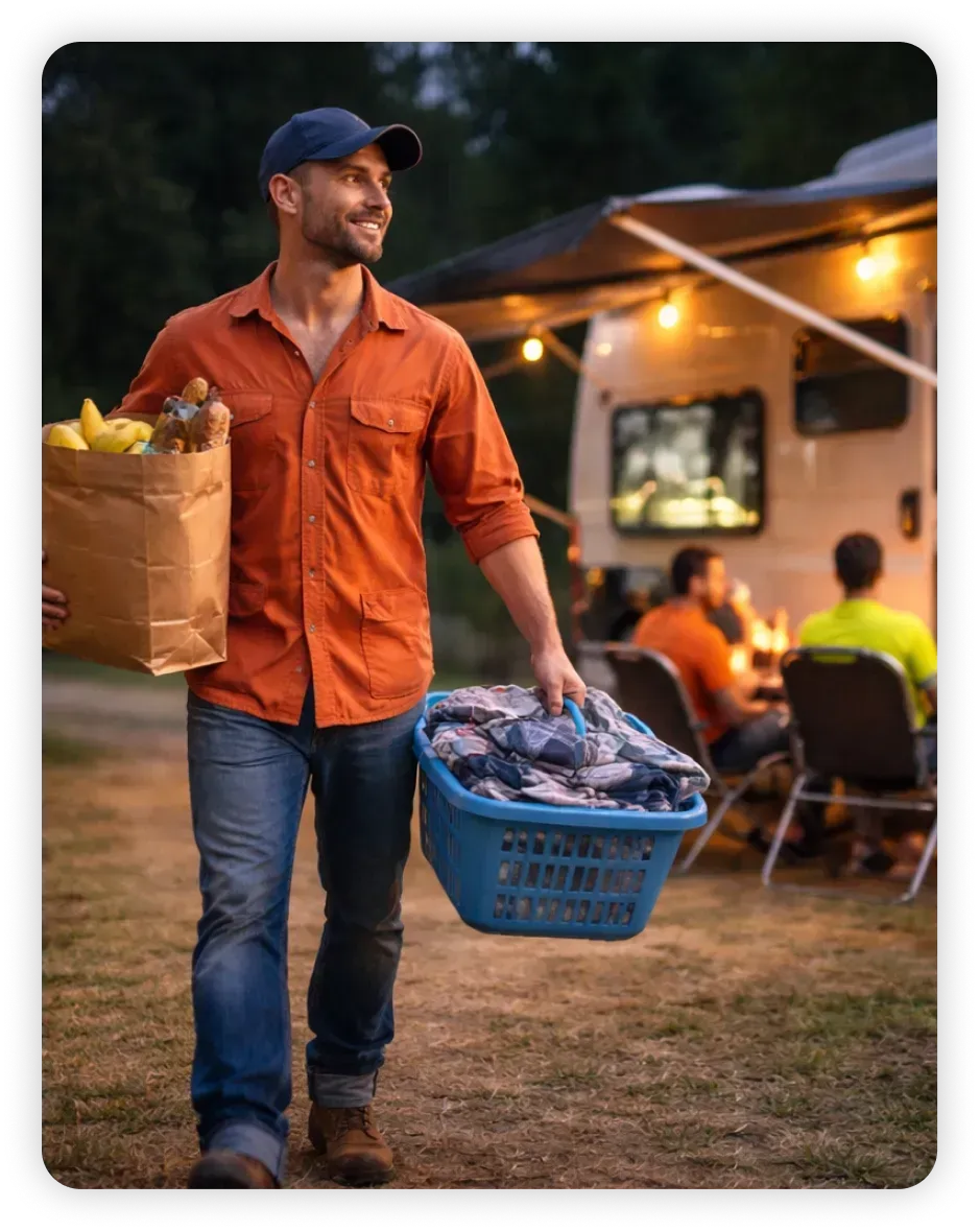 especially for an extended stay workforce: with grocery store, laundry mat and checks cashed on-site so you can rest easy.
